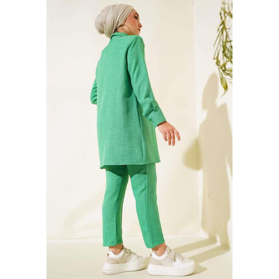 Benetton ชุดเซ็ต2ชิ้นสำหรับผู้หญิง, ชุด2ชิ้น XS-XL กระดุมเสื้อชุดสั้นเข้าชุดผ้าลินิน XS-XL