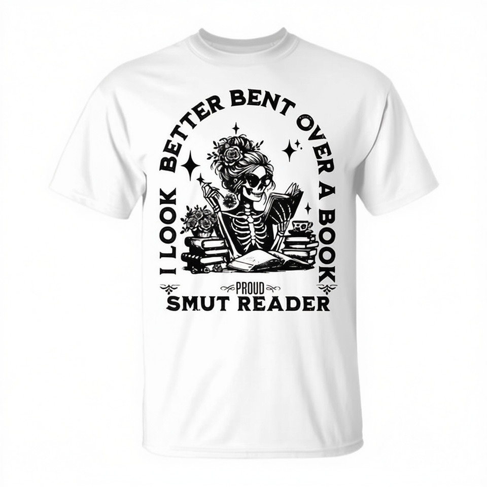 เสื้อยืดลาย "งอหลังอ่านหนังสือ" สำหรับคนชอบอ่านเรื่องอีโรติก ฉันดูดีขึ้น - สินค้าส่งเสริมการขาย