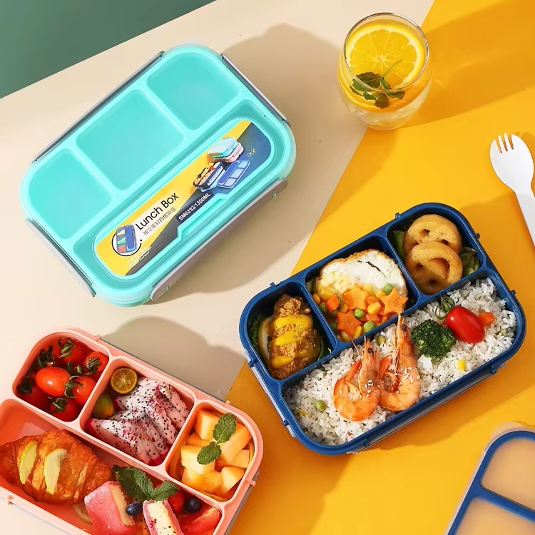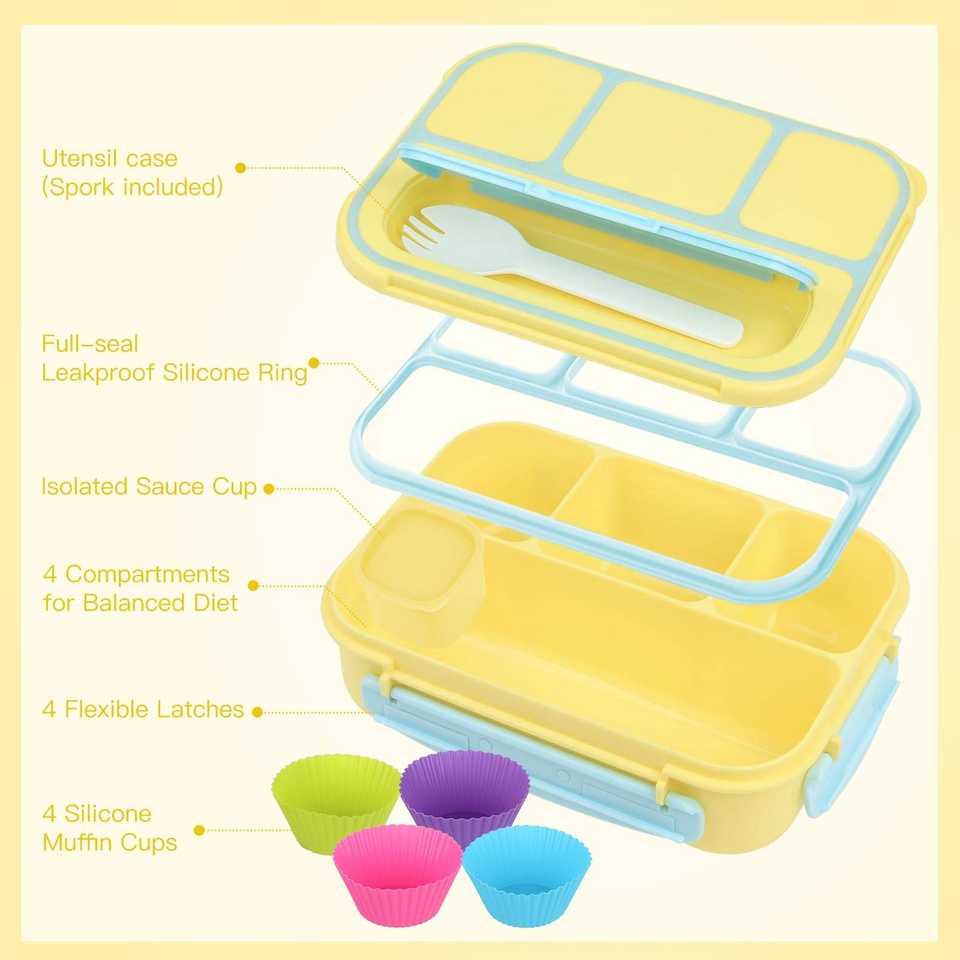 กล่องเบนโตะสำหรับผู้ใหญ่ผู้ชายผู้หญิงพร้อมภาชนะใส่อาหารกล่องใส่อาหารกล่องใส่ซอส4ช่อง