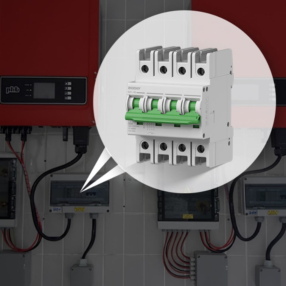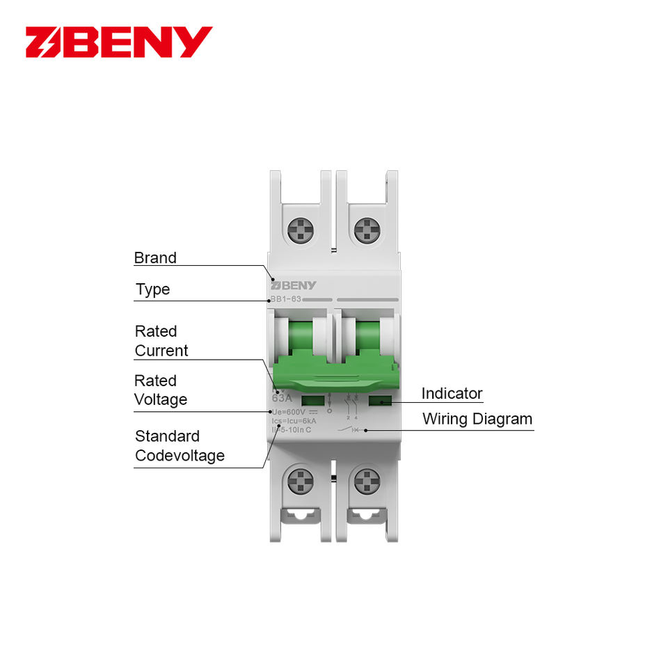 Beny 600v 50a 2p Dc เบรกเกอร์ 5ka Mcb เบรกเกอร์ขนาดเล็กสําหรับระบบพลังงานแสงอาทิตย์