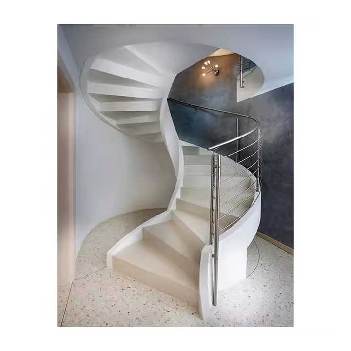 เบอร์แมนบันไดในบ้านแบบเกลียวเชือกลวดราวบันไดกระจกดอกยางหินอ่อนดีไซน์แบบเกลียวสำหรับบันไดแบบเกลียวในร่ม