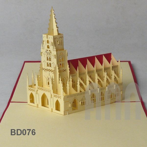 การ์ดเบอร์เนอร์มุนสเตอร์กระดาษคุณภาพสูงการ์ดอวยพรคราฟท์การ์ดป๊อปอัพ 3D ทําด้วยมือแบบกําหนดเอง