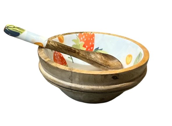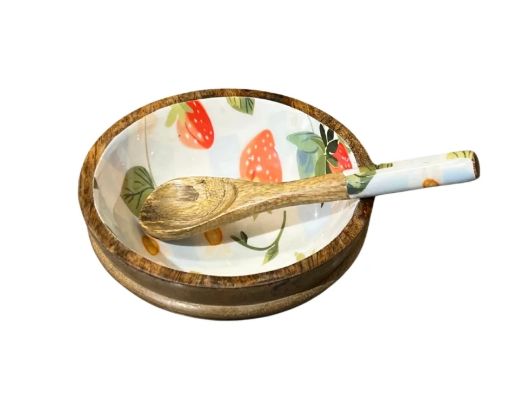 ชามไม้สำหรับตกแต่งทำจากไม้มะม่วงเบอร์รี่ชามสลัดพร้อมเครื่องใช้ในการรับประทานอาหารไม้