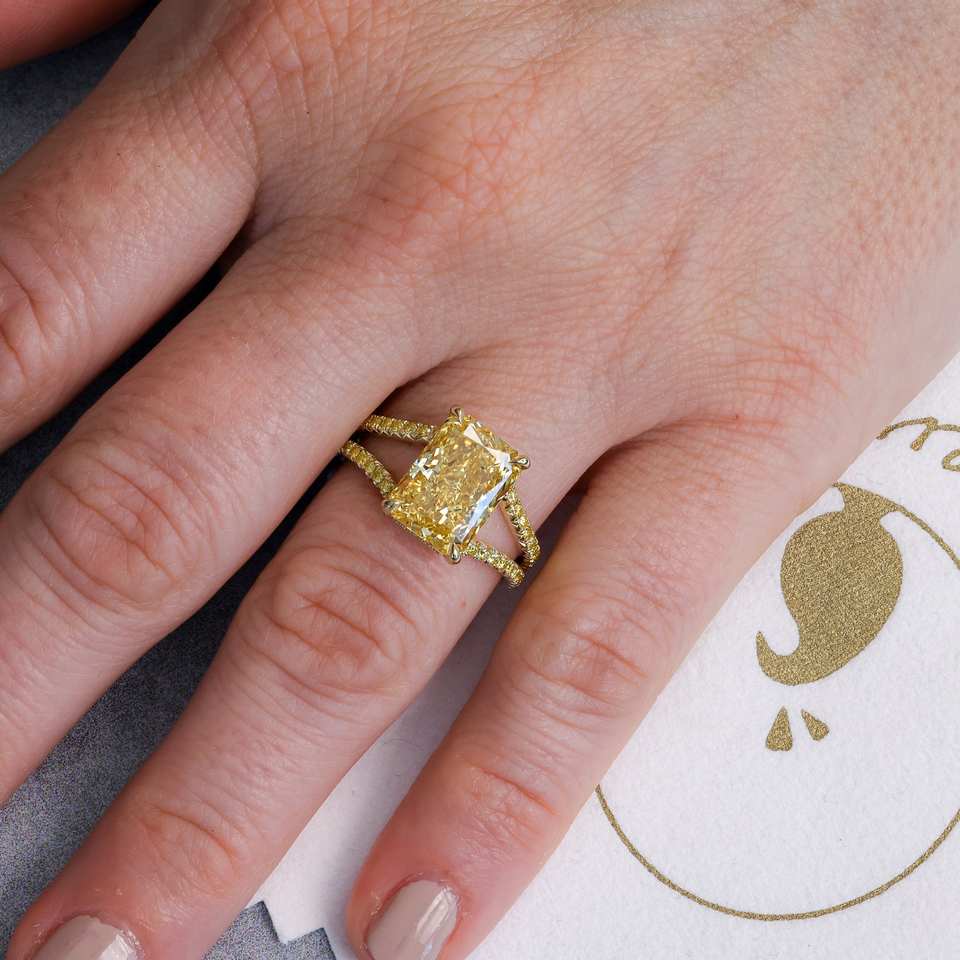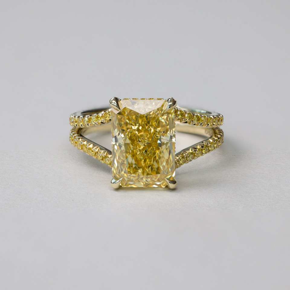 Bespoke แหวนหมั้นเพชรสำหรับปลูก2.50CT สีเหลืองสดใส14K แหวนหางปลาฝรั่งเศสสีเหลืองทอง