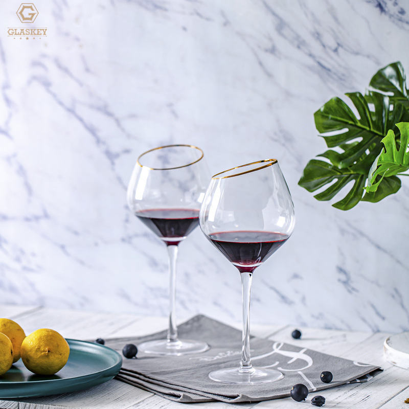 Bespoke แก้วไวน์คริสตัลขอบทองทำจากแก้วทรงสูงสำหรับฉลองครบรอบและคริสต์มาส