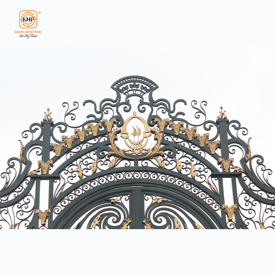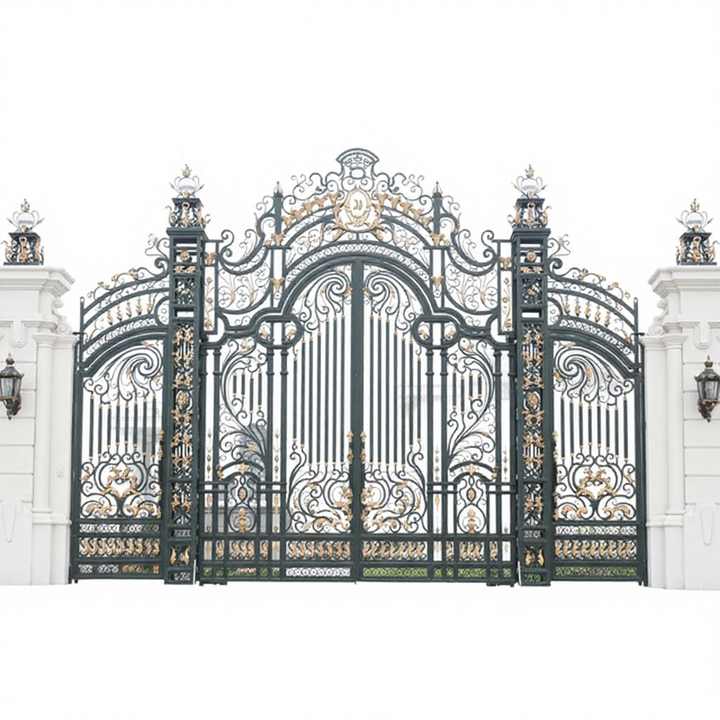 ประตูรั้วเหล็กดัดสั่งทำพิเศษสำหรับวิลล่า ดีไซน์หรูหรา ผลิตด้วยมือ ชุบกัลวาไนซ์แบบจุ่มร้อน ป้องกันสนิม ป้องกันการโจรกรรม ประตูคู่