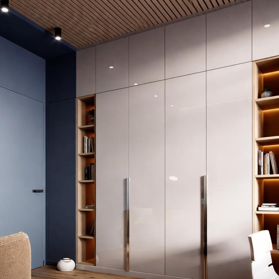 Bespoke ตู้เสื้อผ้ามัลติฟังก์ชั่นพับได้, ออกแบบตามสั่งพื้นผิวไม้ขัดเงาขนาดกำหนดเองได้ทันสมัย