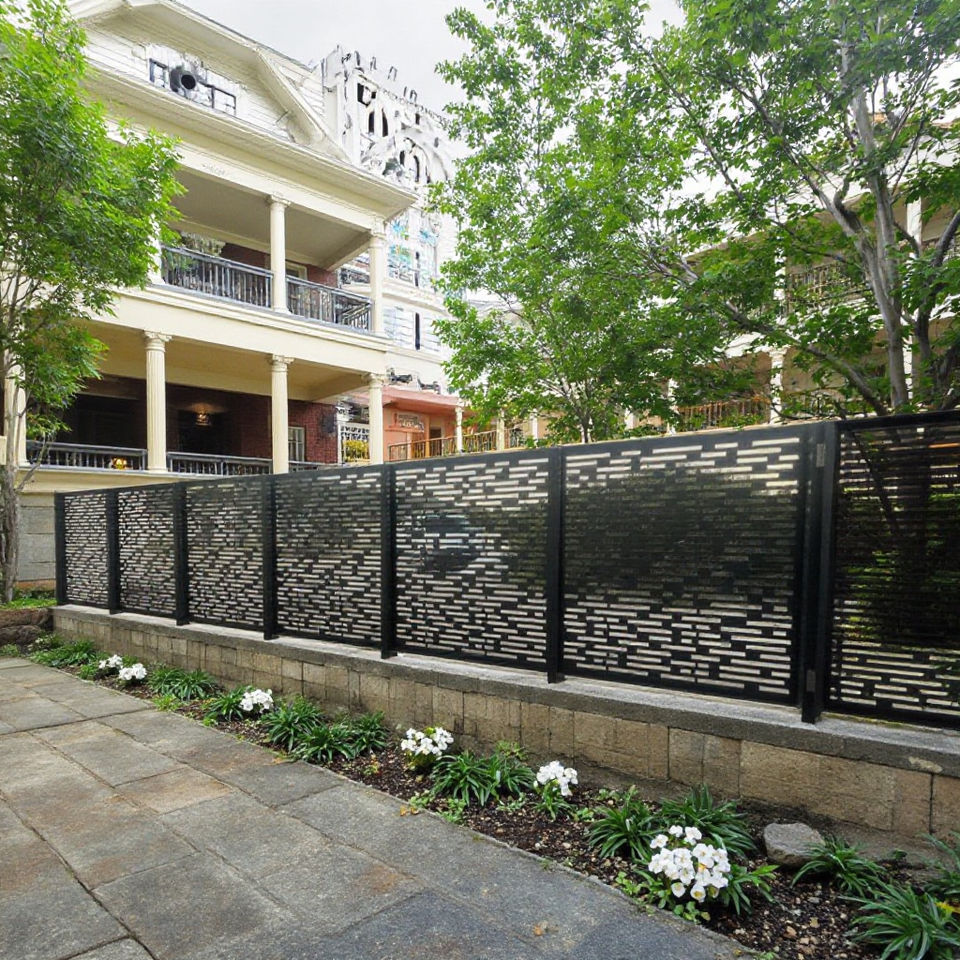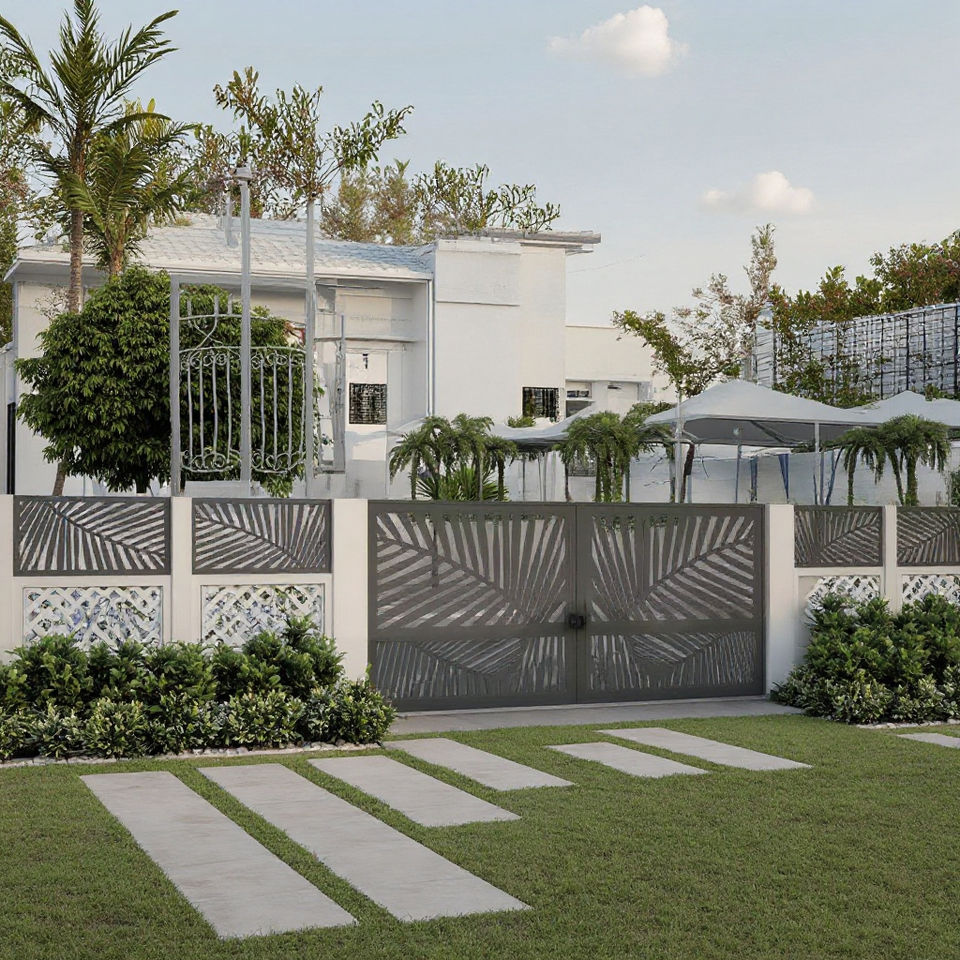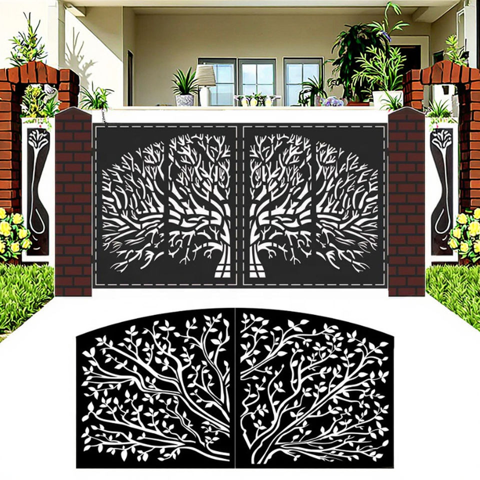 Bespoke ประตูทางเข้าโลหะสำหรับกลางแจ้ง3D ตัดด้วยเลเซอร์อลูมิเนียมเคลือบผงสีดำคุณภาพสูงประตูสวนรั้ว
