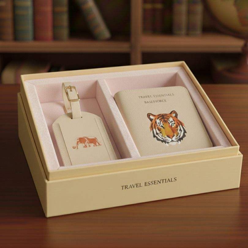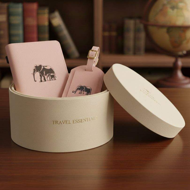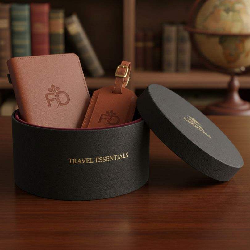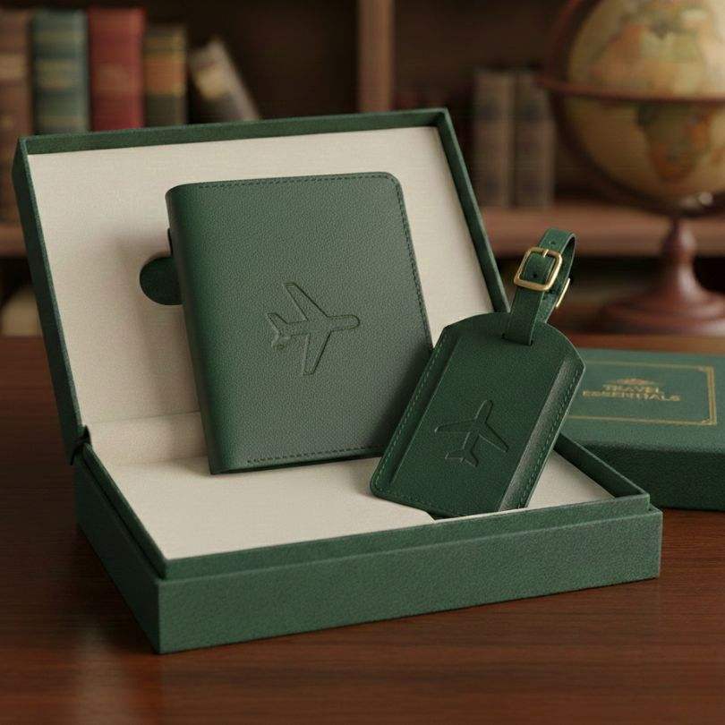 ชุดอุปกรณ์เดินทางธุรกิจหนังเทียมสั่งทำพิเศษ พร้อมซองใส่บัตรเครดิตป้องกันการโจรกรรมข้อมูล และซองใส่พาสปอร์ตพร้อมโลโก้แบรนด์ตามสั่ง