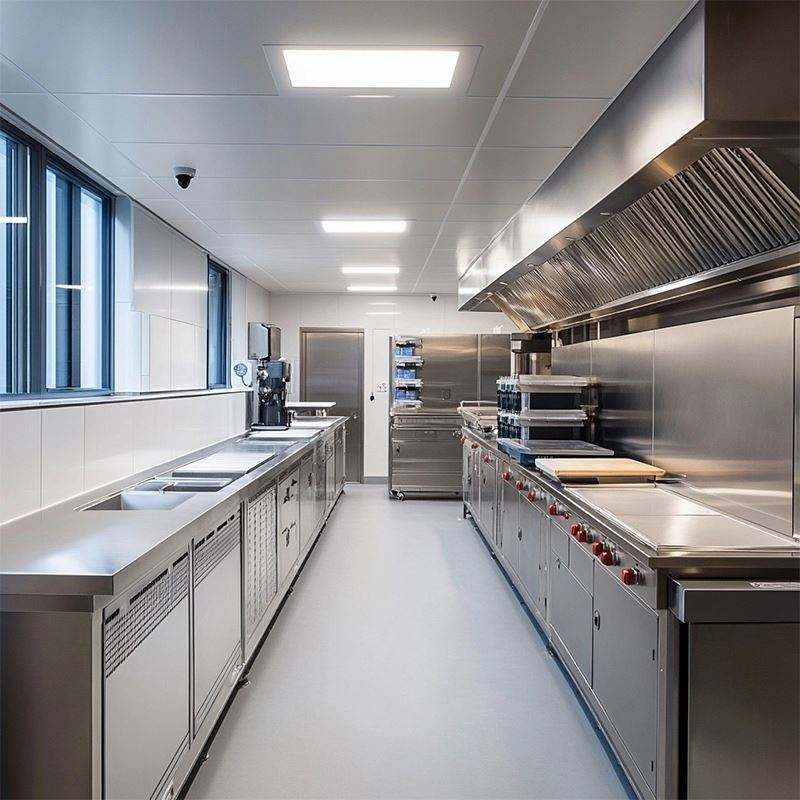 ชุดครัวสแตนเลสสั่งทำพิเศษ ปรับแต่งขนาดและสไตล์ได้ ทนทาน พร้อมตู้เก็บของ ชุดอ่างล้างจาน และตู้เก็บของใต้เคาน์เตอร์ ออกแบบ CAD ฟรี