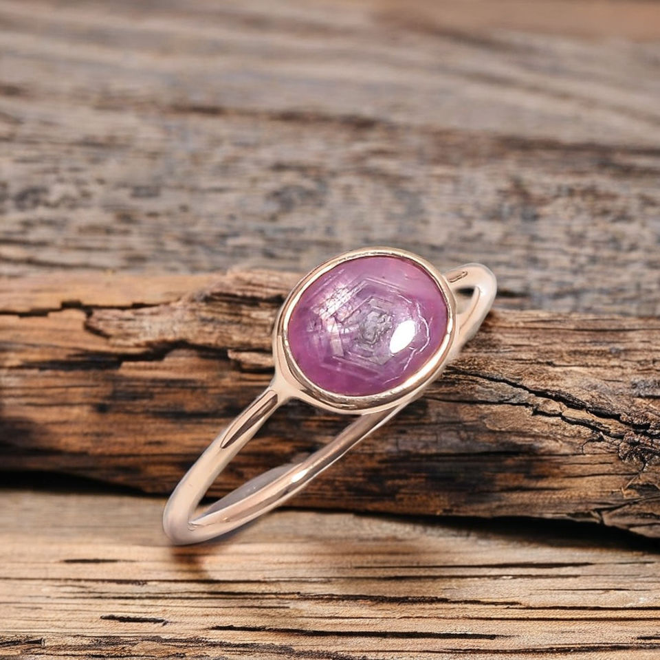แหวนทองชุบ 14k คุณภาพดี ประดับด้วยพลอยทับทิมแท้ทรง Trapiche สไตล์ชาติพันธุ์ ดีไซน์แบบ Bar Setting เหมาะสำหรับงานแต่งงานหรืองานปาร์ตี้