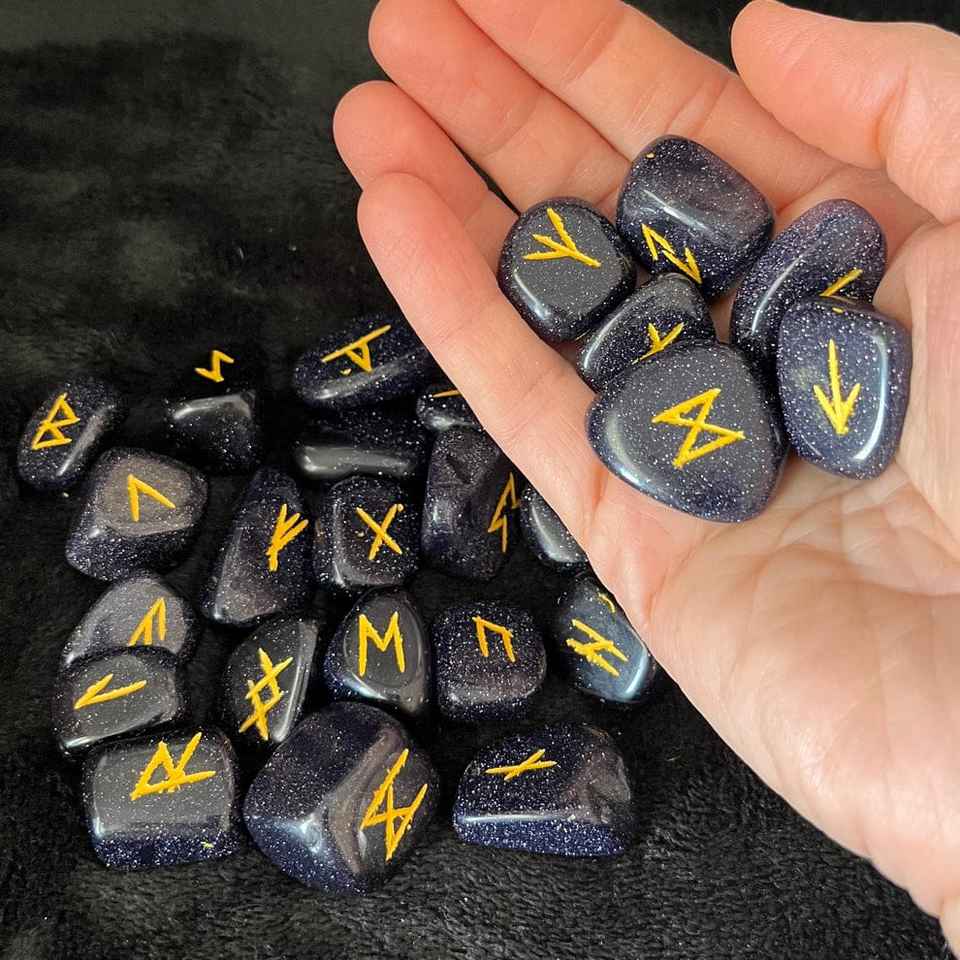 ชุดอักษรรูนหินสีทอง25ชิ้นที่ดีที่สุดแกะสลักฮวงจุ้ยจี้อัญมณีกึ่งมีค่าแกะสลักอักษรรูนอาเกตสำหรับตกแต่งบ้านความรัก