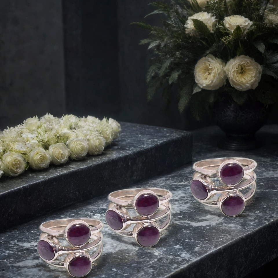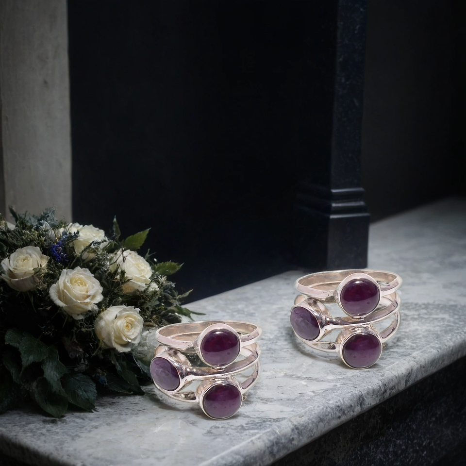 แหวนเงินสเตอร์ลิงสำหรับทุกเพศดีไซน์ชาติพันธุ์พลอยคอรันดัมเหมาะสำหรับงานแต่งงานงานหมั้นปาร์ตี้