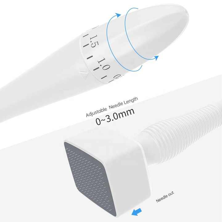 ความยาวเข็มปรับได้: ความยาวเข็มที่สามารถปรับได้จาก 0-3.0 มม. ช่วยให้การรักษาด้วยไมโครนีดลิ่งมีความแม่นยำและปรับแต่งได้ตามต้องการ ซึ่งเหมาะสมกับสภาพผิวและบริเวณต่างๆ มากมาย
