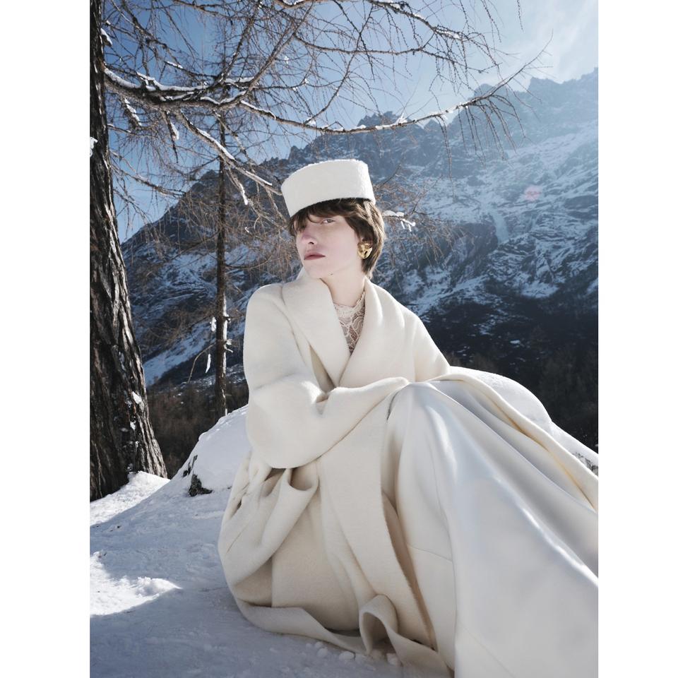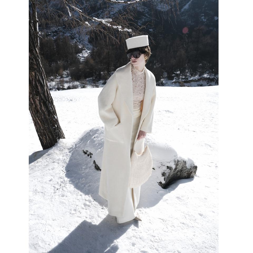 เสื้อโค้ทผู้หญิงคุณภาพดี รุ่นใหม่ VENETO ALPACA LONG COAT ODM ผลิตจากผ้า Suri 75% แคชเมียร์ 20% ไลลอน 5% สีขาว