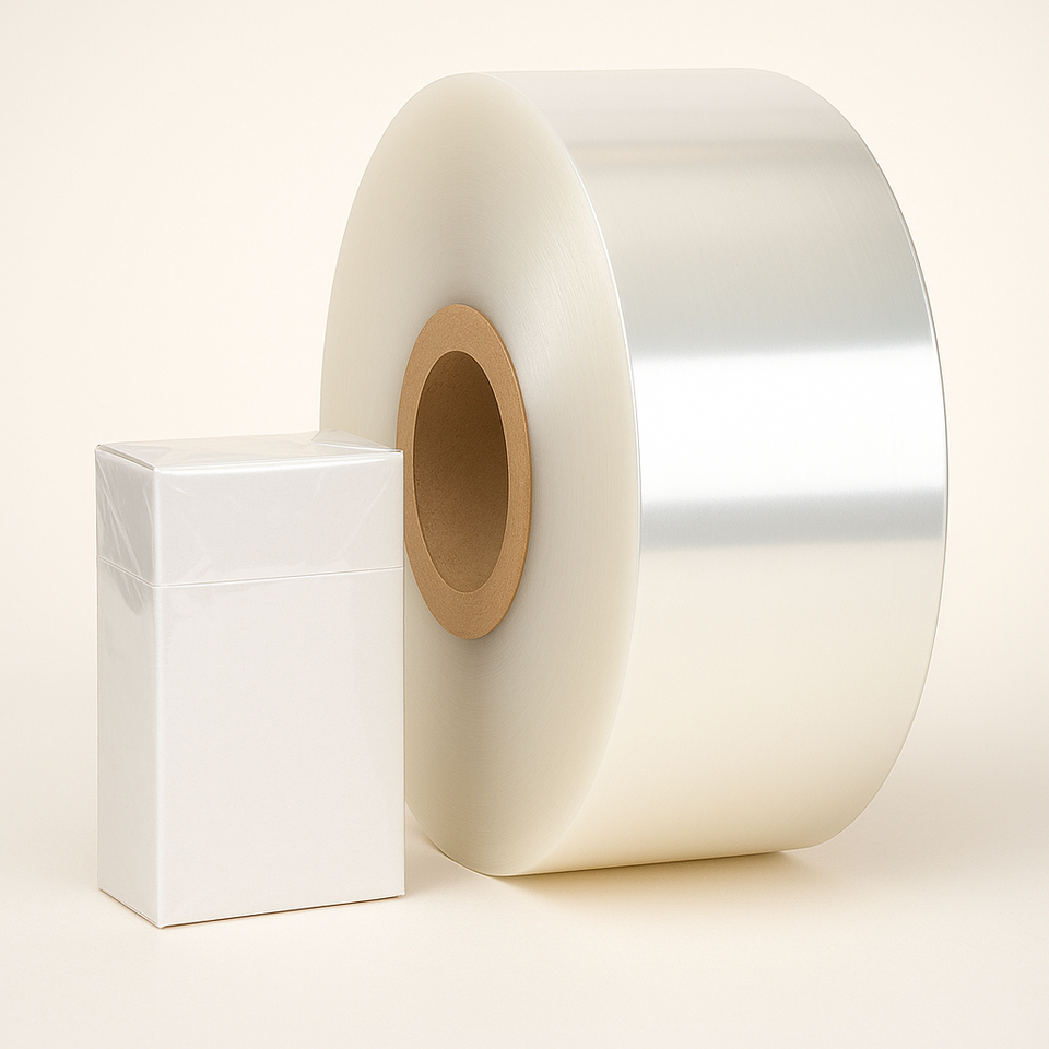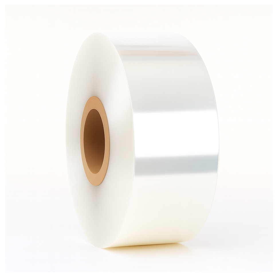 ม้วนฟิล์มพลาสติกโพลีโอเลฟินส์ใส19ไมครอนหดได้สำหรับอาหารขนาด200มม. X 1100ม. สำหรับบรรจุขนมบิสกิต