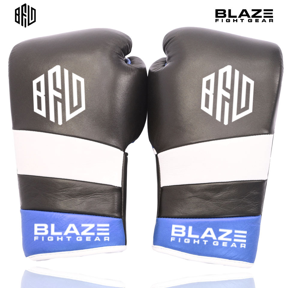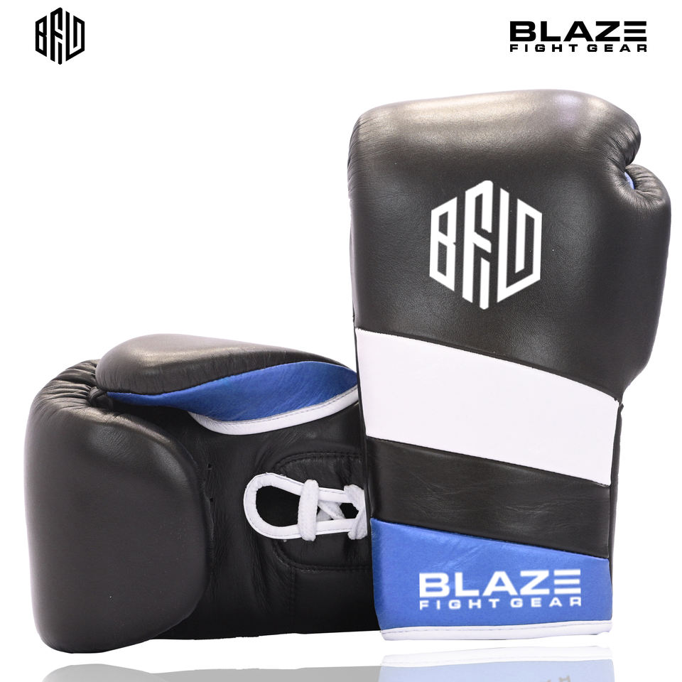 ถุงมือคิกบ็อกซิ่งหนังวัวแท้ที่มีการปิดแบบผูกเชือกและให้ความชุ่มชื้นสำหรับการฝึกมวยไทยทั้งชายและหญิง