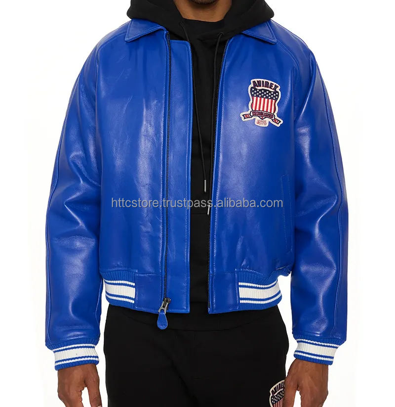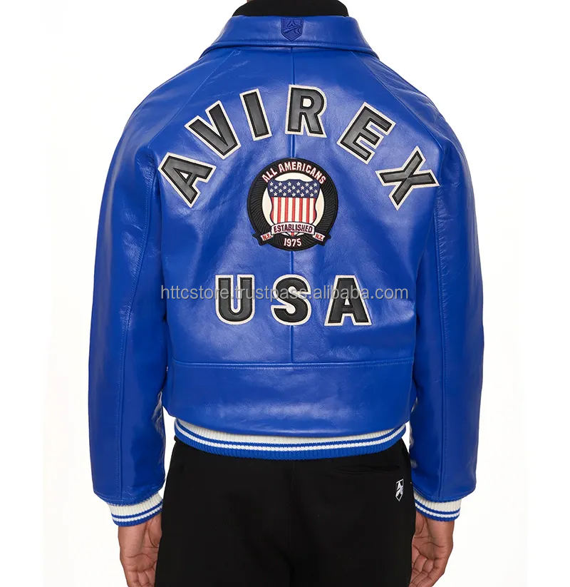 แจ็คเก็ตหนังผสมผ้าแคนวาสทรงบอมเบอร์สไตล์อเมริกัน Avirex USA Edition คุณภาพสูง ยี่ห้อดัง สำหรับผู้ชาย ระบายอากาศได้ดี ทรงเข้ารูป ปรับแต่งตัวอักษรได้