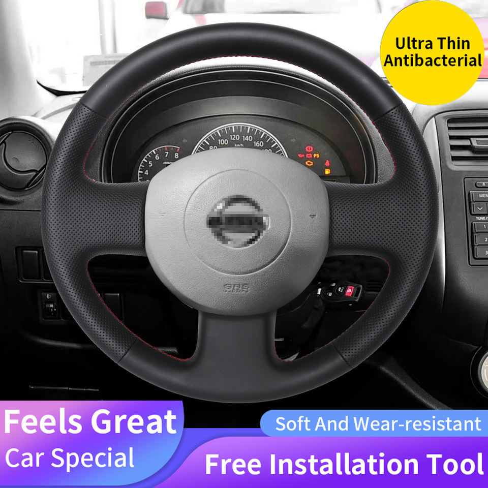 ผลิตภัณฑ์ดูแลรักษารถยนต์ที่ดีที่สุด ปลอกหุ้มพวงมาลัยหนังเย็บมือ สำหรับรถยนต์นิสสัน มาร์ช K12 ปี 2005