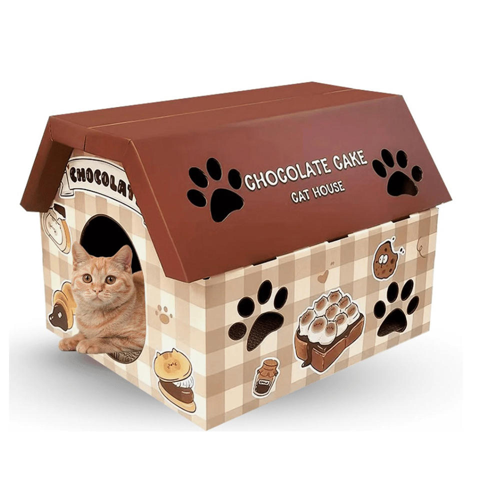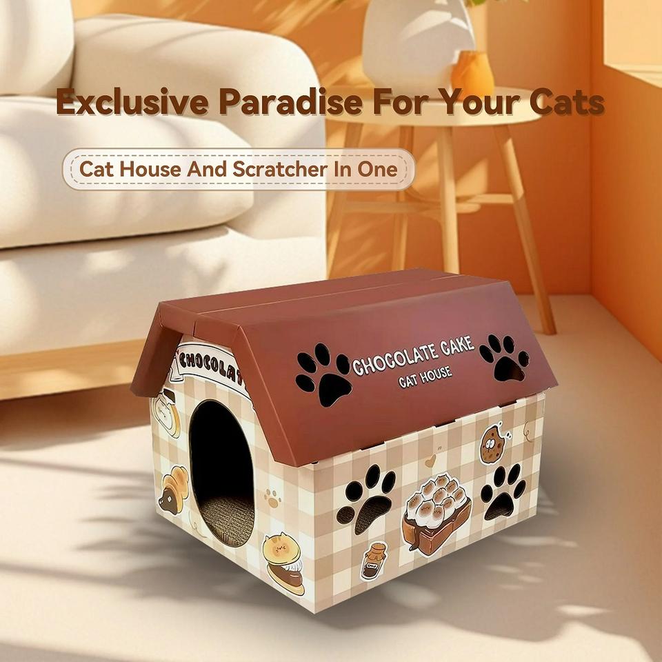 บ้านแมวกระดาษแข็งที่ดีที่สุดพร้อมที่เกาเตียงแมวสำหรับแมวในบ้านของเล่นแมวสัตว์เลี้ยงแมวที่ลับเล็บแมว (ช็อคโกแลต)
