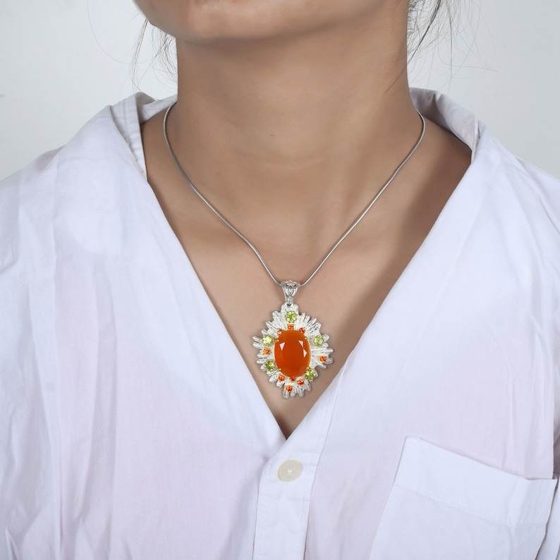 สร้อยคอจี้คาร์เนเลี่ยนที่ดีที่สุดสร้อยคอเงิน925แท้สำหรับผู้หญิงจี้อัญมณีจี้ดีไซน์แบบโบฮีเมียนจี้ของขวัญวันเกิด