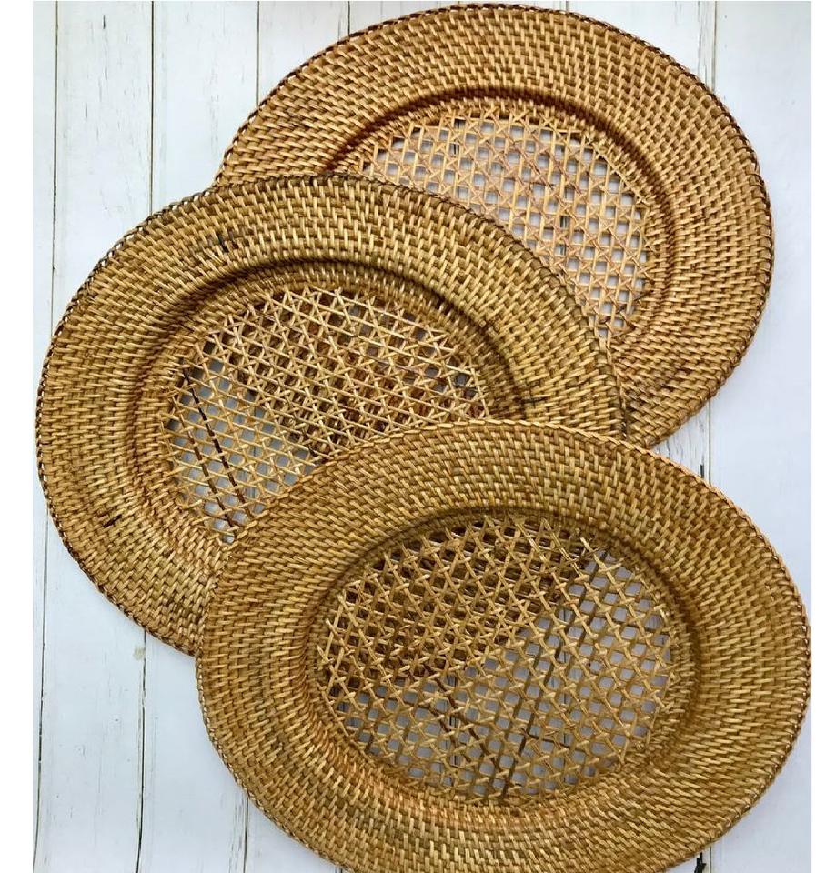 แผ่นรอง2025เสื่อและแผ่นรองจานหวายธรรมชาติแบบกลมสำหรับรองนั่ง