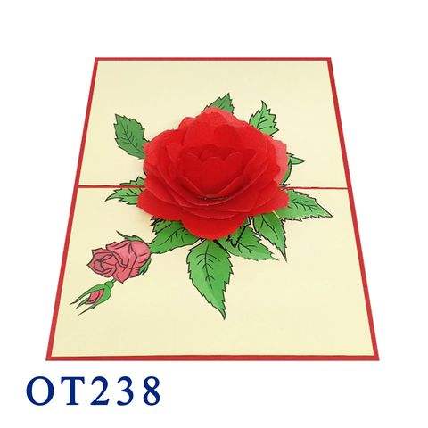 การ์ดอวยพรแฮนด์เมด 3 มิติ ลาย 'ดอกกุหลาบแดง' ตัดด้วยเลเซอร์ งานฝีมือกระดาษเวียดนาม ของขวัญสุดพิเศษ