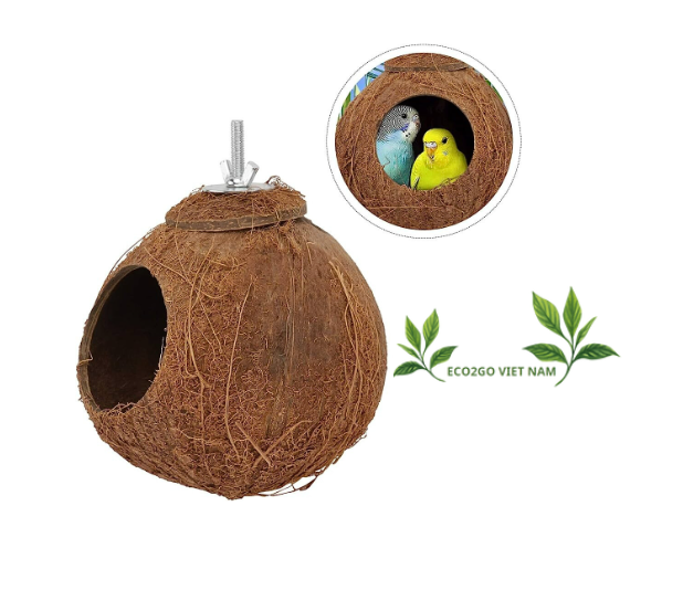 บ้านและที่ให้อาหารนกทำจากกะลามะพร้าว พร้อมสลักโลโก้ลายสัตว์ตามสั่งด้วยเลเซอร์ Eco2go เวียดนาม