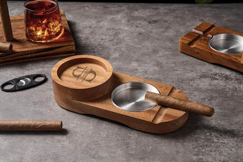 ที่เขี่ยบุหรี่ไม้และโลหะแบบสองช่อง