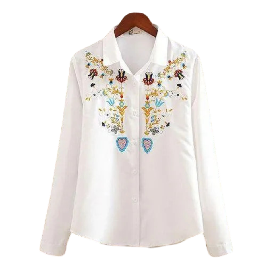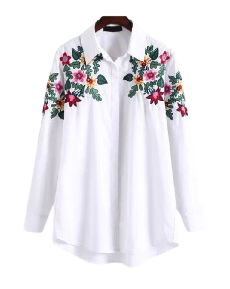 เสื้อเชิ้ตสีขาวผู้หญิงทรงสวยสง่า สวมใส่สบาย ทรงลำลอง ผ้าทนทาน ดีไซน์สั่งทำพิเศษ ปักลาย กระดุมเรียบง่าย ด้านหน้าเรียบ