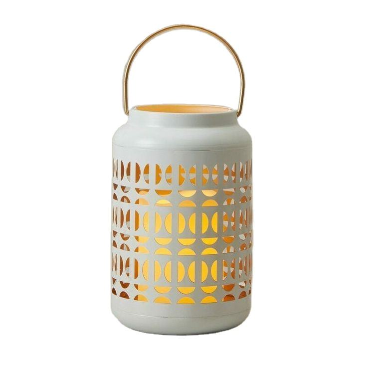 ที่ใส่เทียนโลหะเคลือบผงสีขาวโคมไฟแขวนกลางแจ้งทำจากสแตนเลสสำหรับตกแต่งสวนต้นไม้ในบ้าน