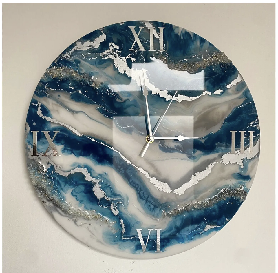 นาฬิกาติดผนังไม้ที่ดีที่สุด นาฬิกาติดผนังไม้กระถินเทศและเรซิ่นอีพ็อกซี่ สไตล์เรซิ่นริเวอร์