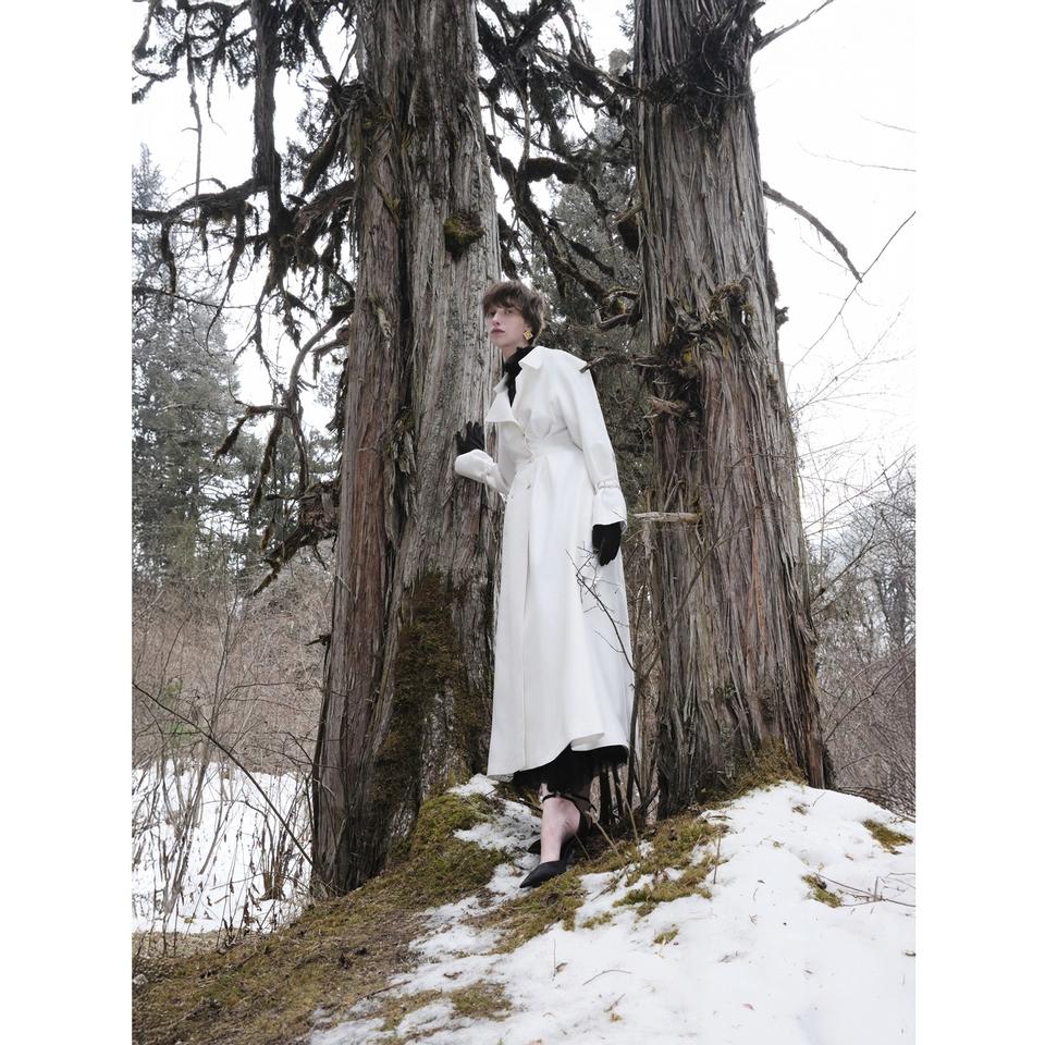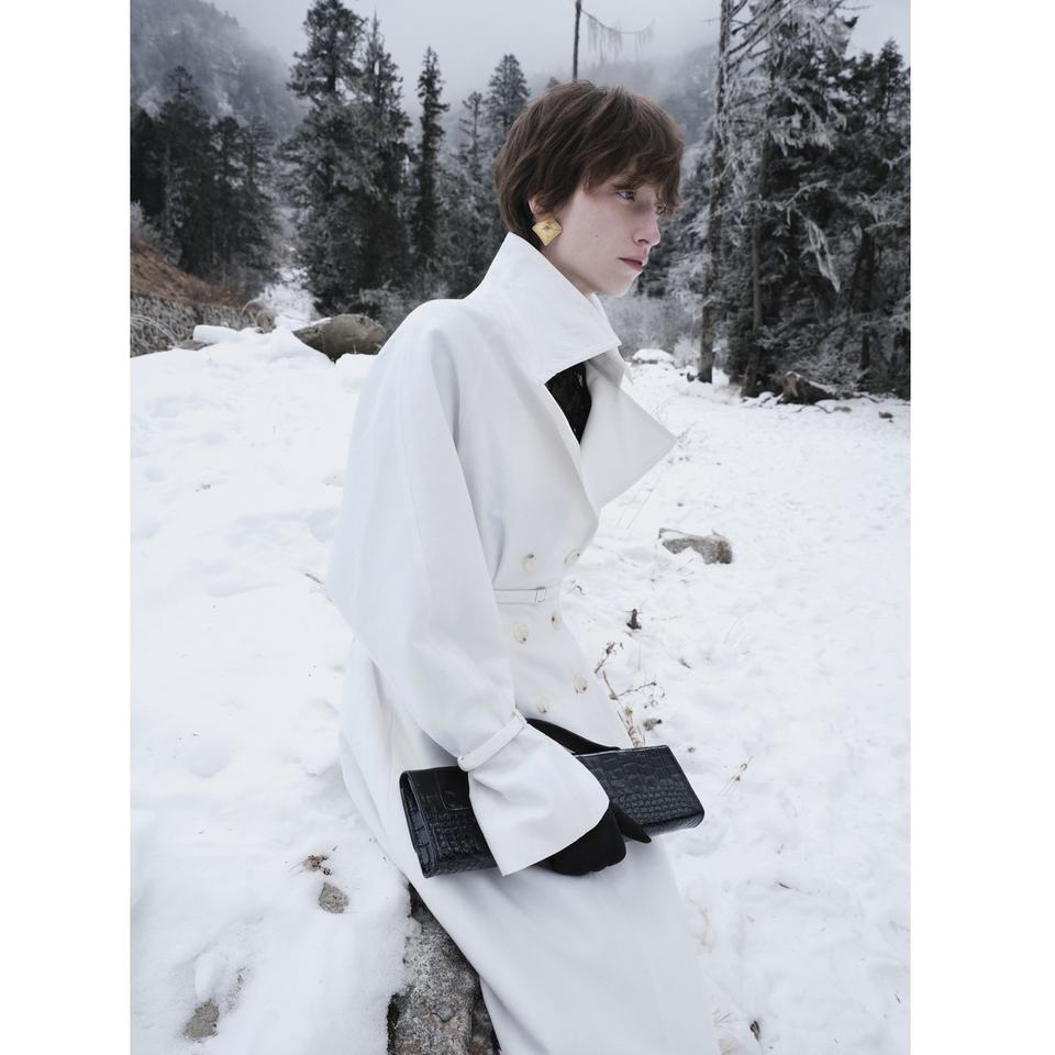เสื้อโค้ทผู้หญิงสำหรับฤดูหนาว ดีไซน์หรูหรา ผ้ากำมะหยี่ กระดุมสองแถว อุ่นสบาย ทรงเข้ารูป ยาวพิเศษ พร้อมเข็มขัด