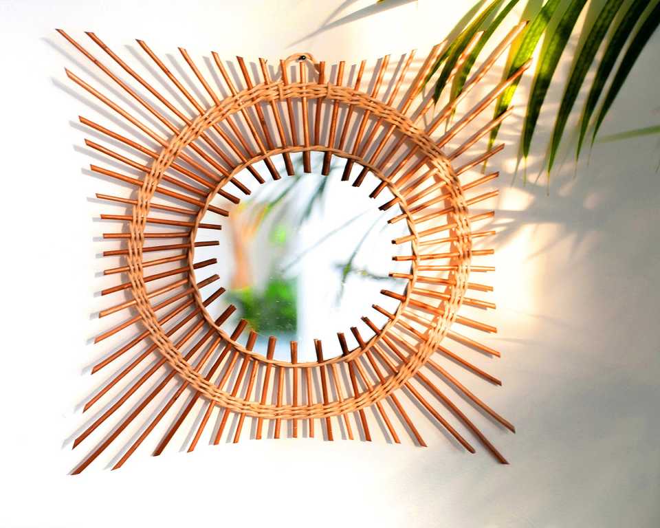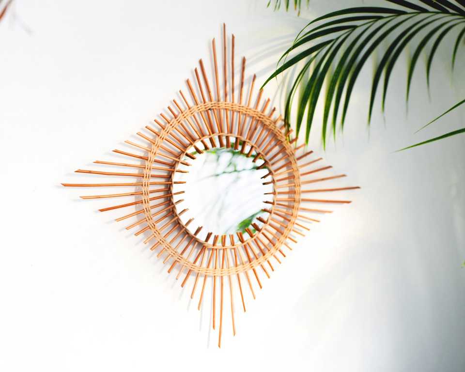 กระจกหวายไม้ไผ่กรอบไฟติดผนังร้านเสริมสวยแพ็กเกจปรับแต่งได้เฟอร์นิเจอร์ห้องรับประทานอาหาร