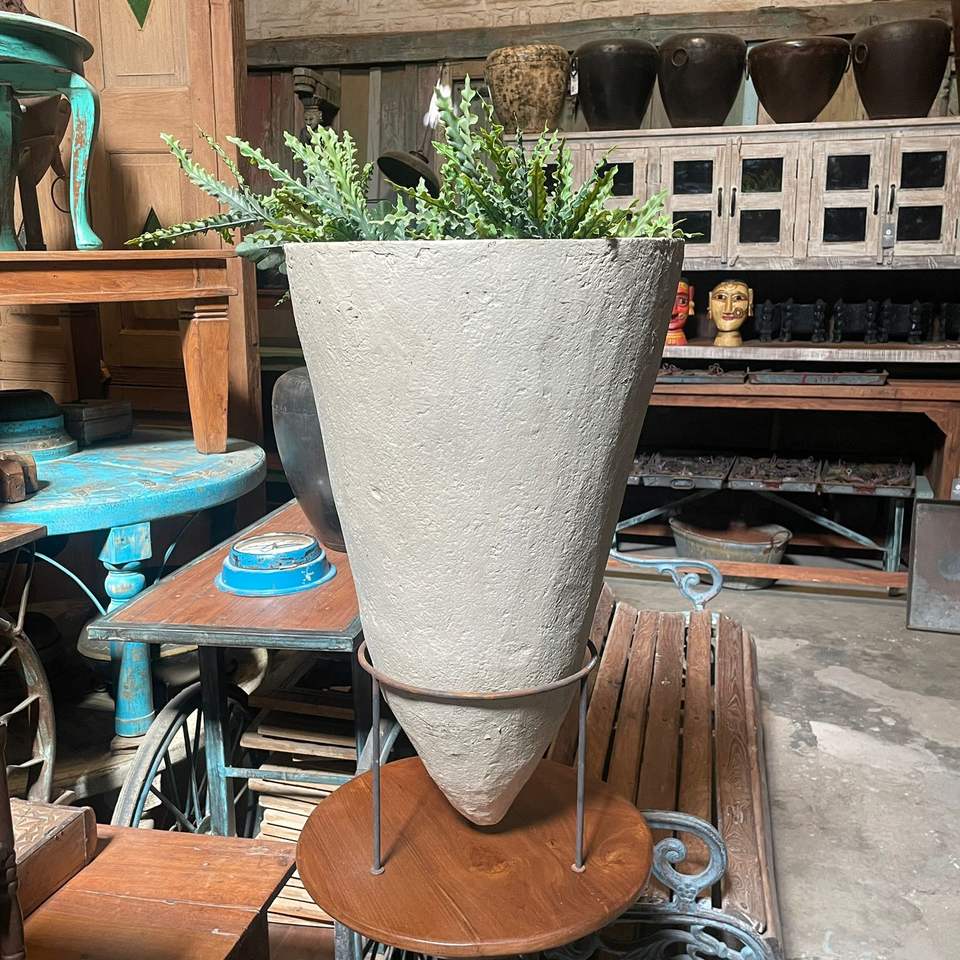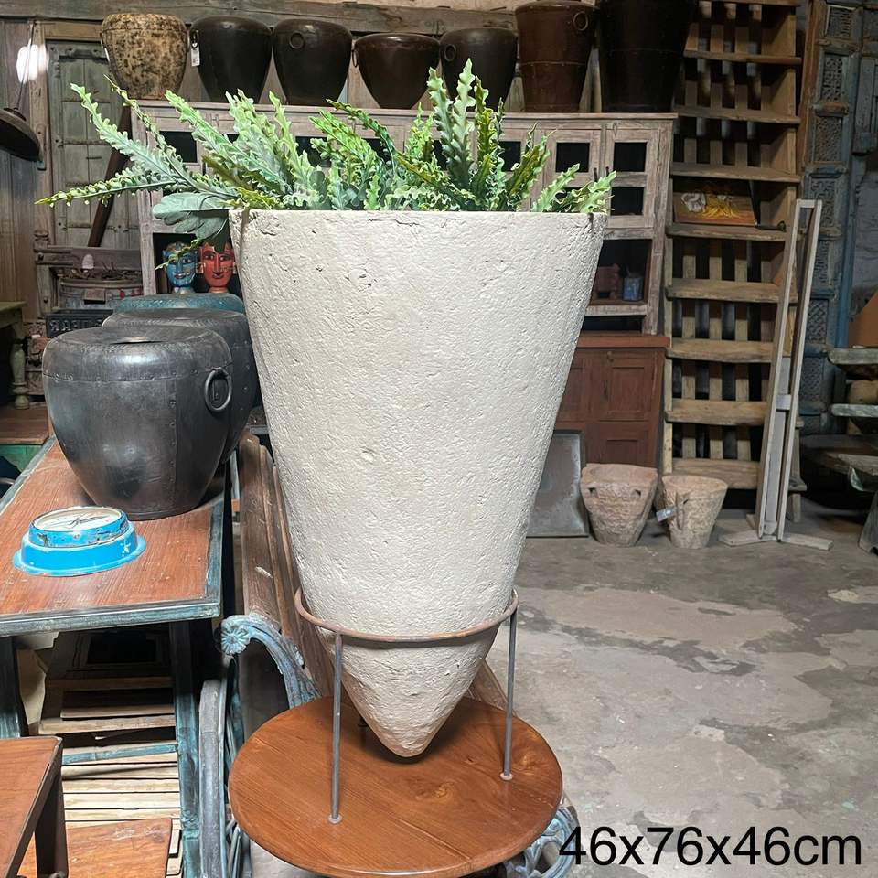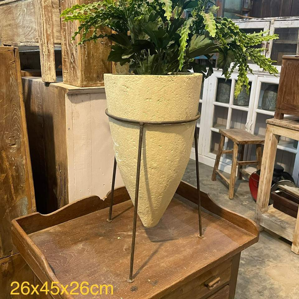 แจกันทรงกรวยทำจากกระดาษมาเช่รักษ์โลก คอลเลคชั่นที่ดีที่สุด พร้อมขาตั้งเหล็กดัด งานศิลปะโบราณจากเทือกเขาหิมาลัย
