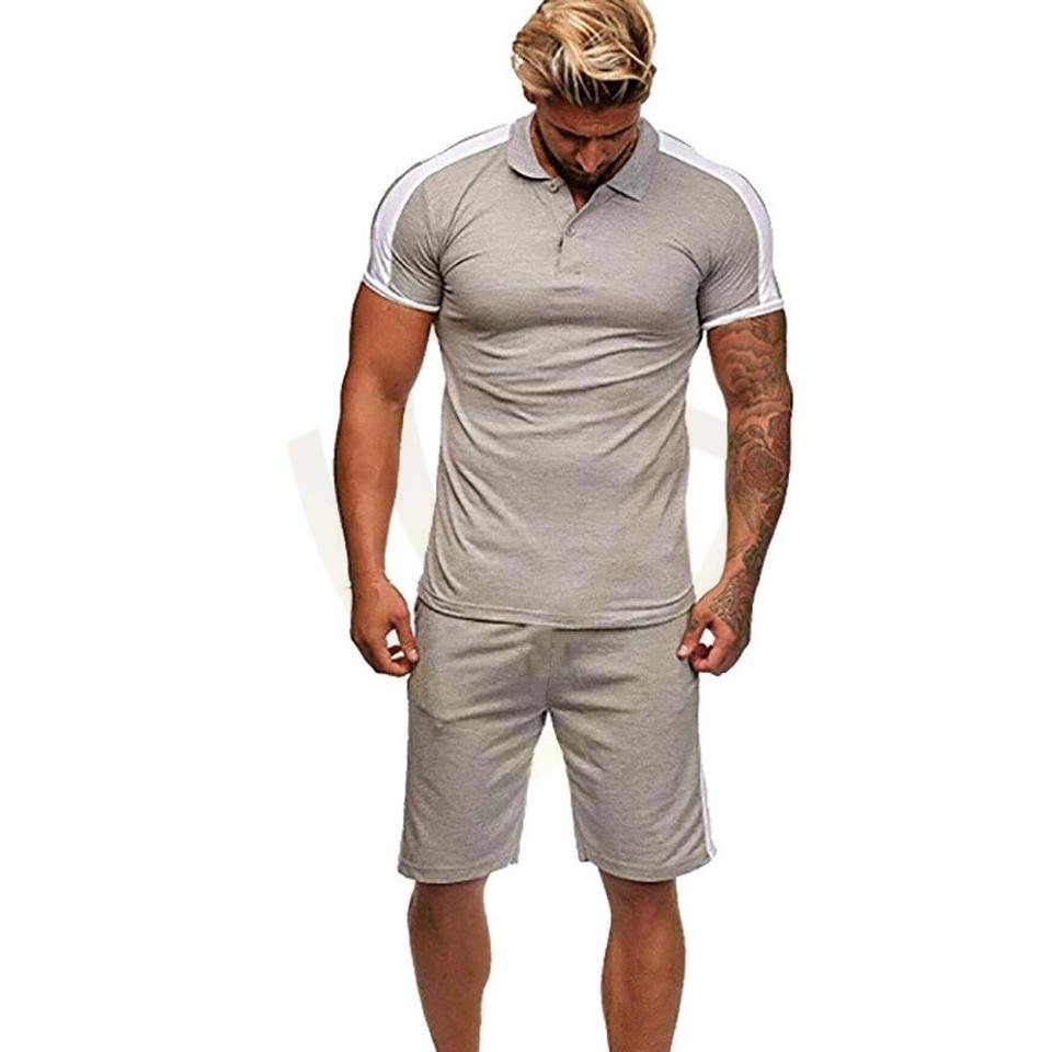 ชุดเสื้อโปโลและกางเกงขาสั้นสำหรับผู้ชาย ใส่สบายรับหน้าร้อน