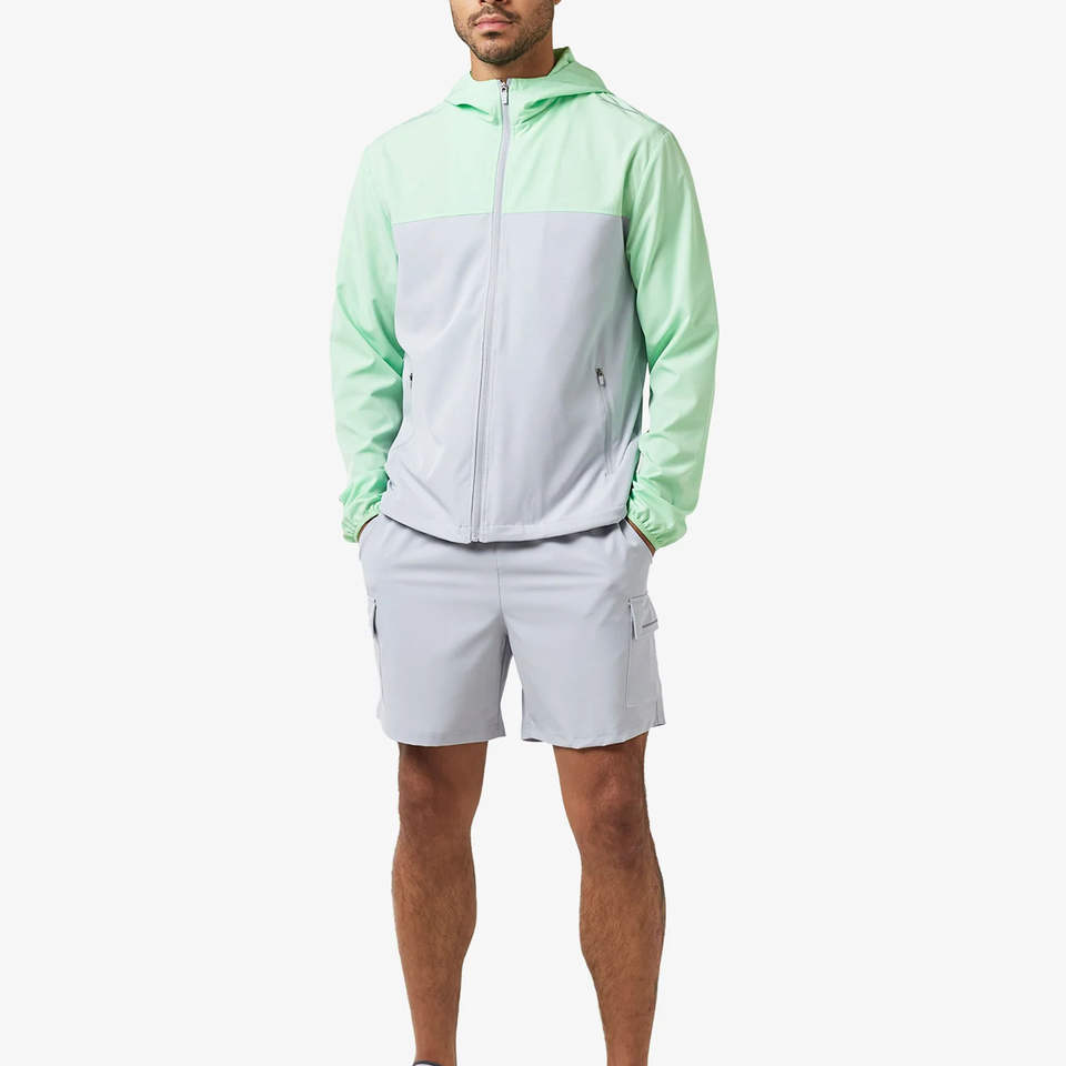 ชุดเสื้อกันลมสำหรับผู้ชายชุดสั้นเสื้อกันลมแห้งเร็วแบบยั่งยืนชุดสั้นสำหรับผู้ชายโลโก้ออกแบบได้ตามที่ต้องการ