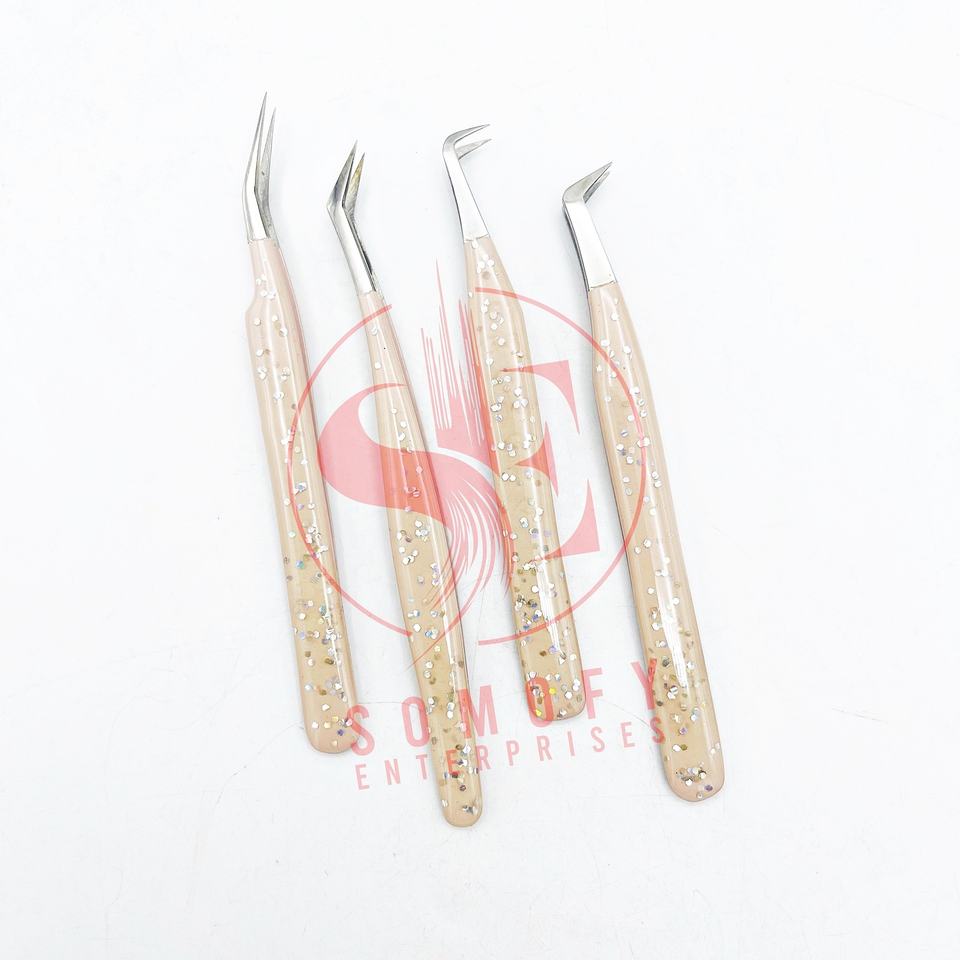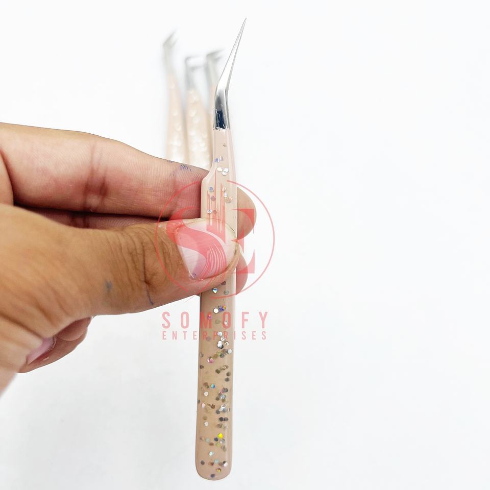 แหนบต่อขนตาสแตนเลสสีนู้ดสีเงินประกายติดฉลากตามสั่ง