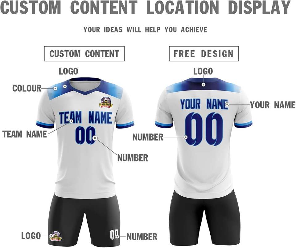 ชุดฟุตบอลปรับแต่งได้ดีที่สุดสำหรับทีมสโมสรมีการพิมพ์ชื่อและโลโก้