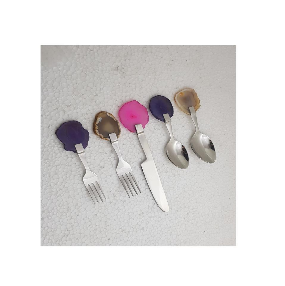 Best Cutlery Set of 5 Modern Agate Stone Handle Flatware Stainless Steel High Quality Finishes Design Luxury High Quality Items