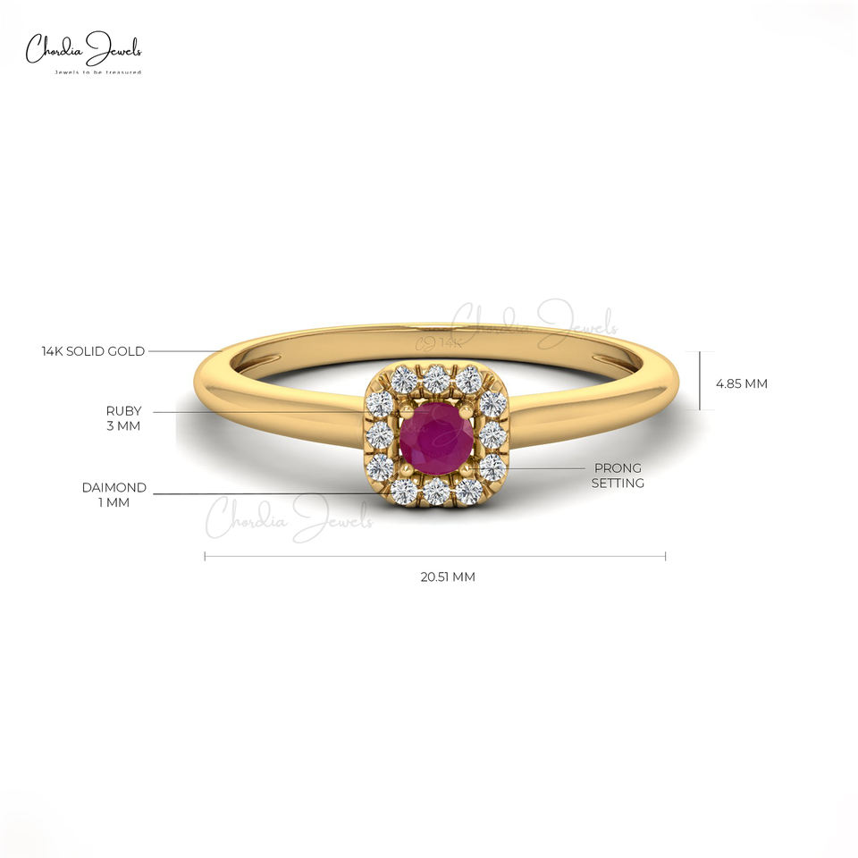 ชุดแหวนเพชรรัศมี14K 1มม. สีทองล้วนพลอยทับทิมธรรมชาติแบบง่ามสำหรับงานแต่งงานเครื่องประดับผู้หญิงขายส่ง