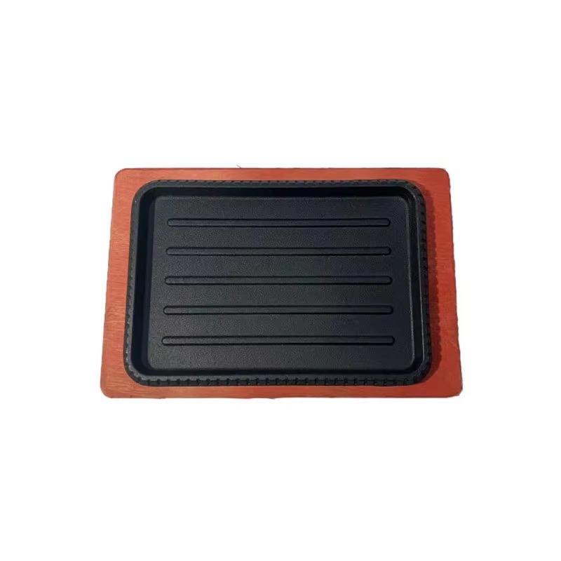 2025ปิ้งย่างทรงสี่เหลี่ยมทำจากเหล็กหล่อพร้อมฐานไม้แผ่นเหล็กสำหรับร้านอาหารและโรงแรมที่ยอดเยี่ยม
