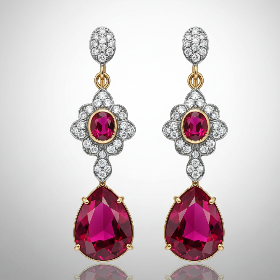 925 Sterling Silver 18K Gold Plated Jewellery Earring Garnet Hydro Oval 12x16 and CZ Wedding Gift for Her At Wholesale Price
