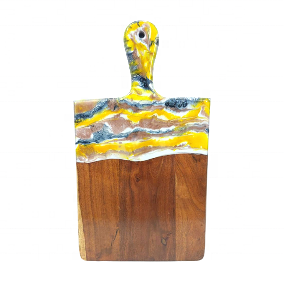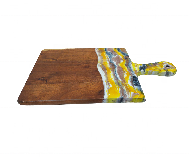เขียงไม้กระถินเทศเคลือบอีพ็อกซี่ ดีไซน์สวย ขนาด 45x30x2 ซม. รูปทรงสี่เหลี่ยมผืนผ้า เหมาะสำหรับเสิร์ฟ ชีส ของขวัญ ใช้เตรียมอาหาร