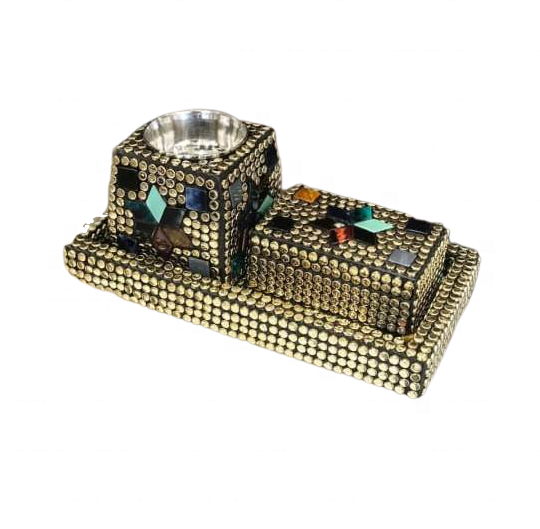 เตาเผาบัคฮูร์แบบอัลลอินวัน ดีไซน์สวยงาม ทำจากไม้ เรซิ่น ทองเหลือง ฝังลายโลหะ ผลิตในอินเดีย สำหรับธุรกิจเครื่องหอม กลิ่นกุหลาบ