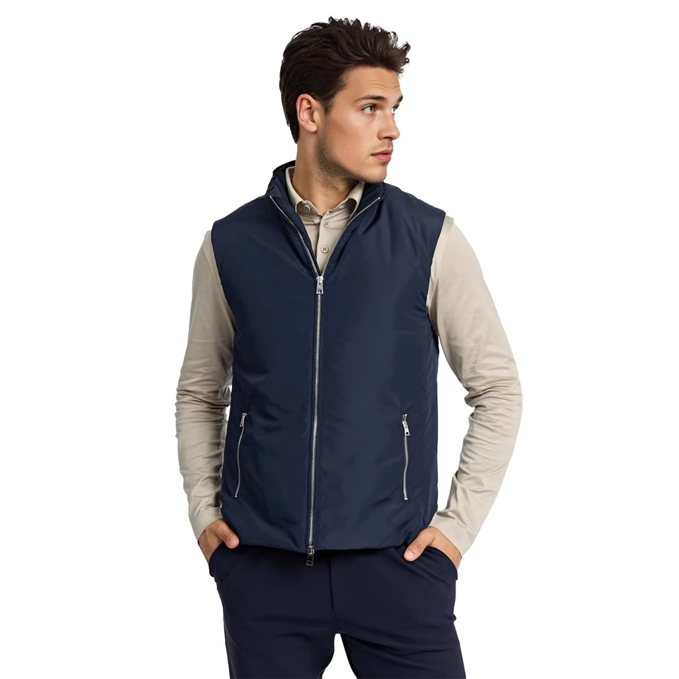 เสื้อกั๊กบอดี้วอร์มเมอร์ดีไซน์สวยที่สุด สกรีนโลโก้ได้ตามต้องการ สำหรับผู้ชาย แบบสองด้านใส่ได้ ไม่มีแขน