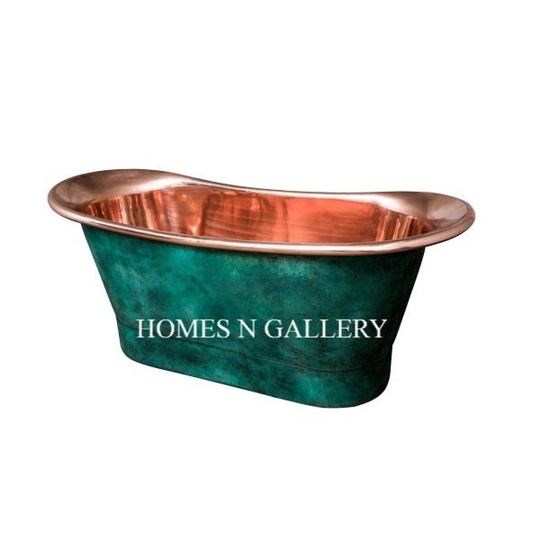 อ่างอาบน้ำทรงรีทำจากทองแดง Patina สีเขียวทรงรีสำหรับห้องน้ำอินเดียวัสดุโลหะตกแต่งทำให้พองได้