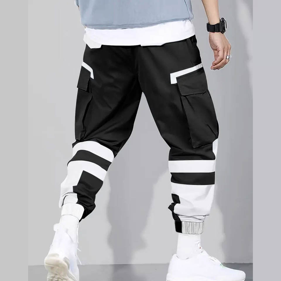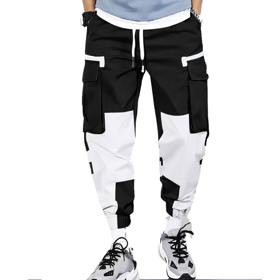 กางเกงผ้าคอตตอนผ้าโพลีเอสเตอร์สีทึบสำหรับผู้ชายกางเกงแนวสตรีทดีไซน์ใหม่