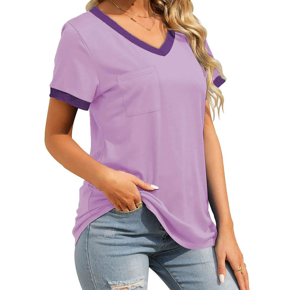 เสื้อยืด OEM สำหรับผู้หญิงไซส์ใหญ่พิเศษผ้าฝ้ายสวมใส่สบายย้อมสีล้วนสำหรับฤดูร้อน