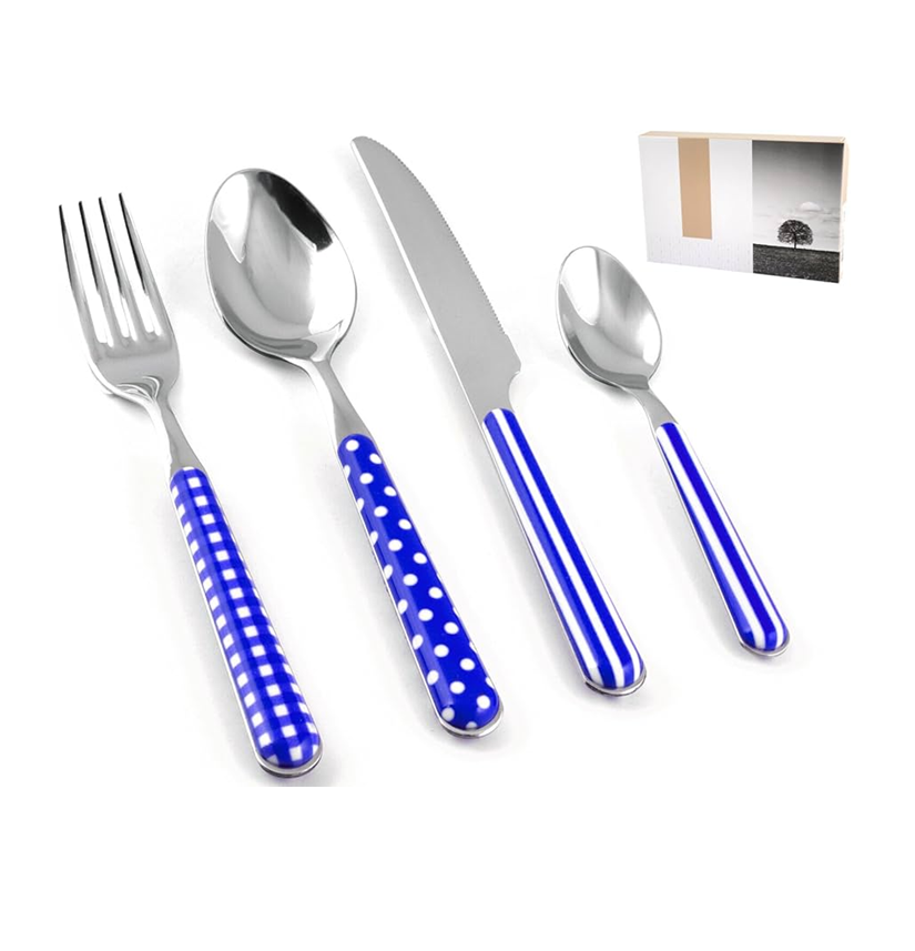 ช้อนรับประทานอาหารแบบแบนมีด้ามจับทำจากเรซินช้อนดีไซน์สวยหรูทำด้วยเหล็ก5ชิ้นมีดช้อนรับประทานอาหารดีไซน์ที่ดีที่สุด